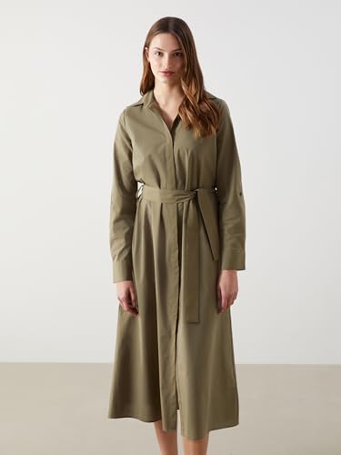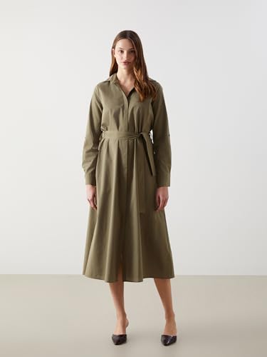 LC WAIKIKI - LC WAIKIKI S5FB25Z8-GXF-1 Classic Poplin 100% Cotton Collared Neck Regular Dresses - Women