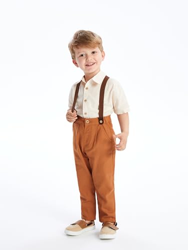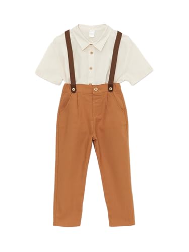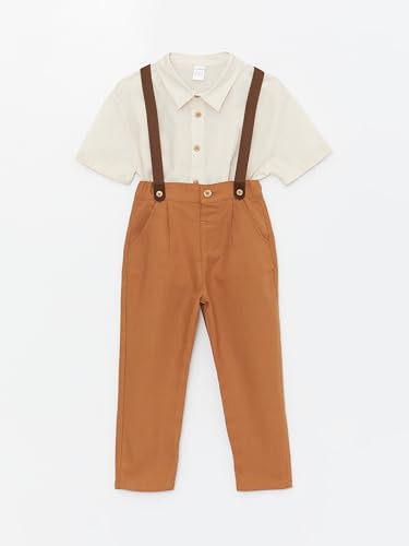 LC WAIKIKI - LC WAIKIKI Short Sleeve Baby Boy Shirt, Trousers and Suspenders 3-Piece Set S4DC66Z1-YB2-1-5-6 Years Beige