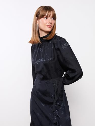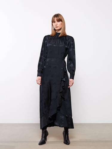 LC WAIKIKI - LC WAIKIKI Turtle Neck Patterned Long Sleeve Women's Dress S31686Z8-Rql-1 40 Black