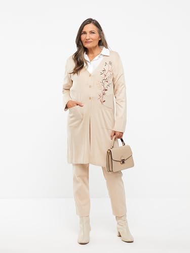 LC WAIKIKI - LC WAIKIKI V Neck Embroidered Long Sleeve Women's Tricot Cardigan