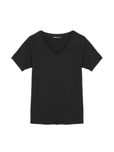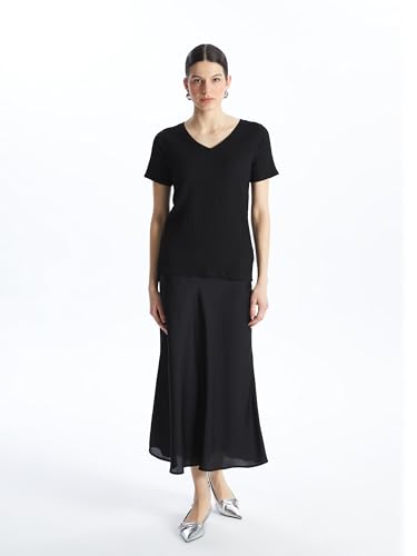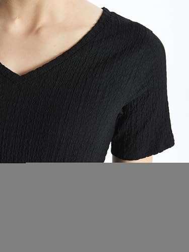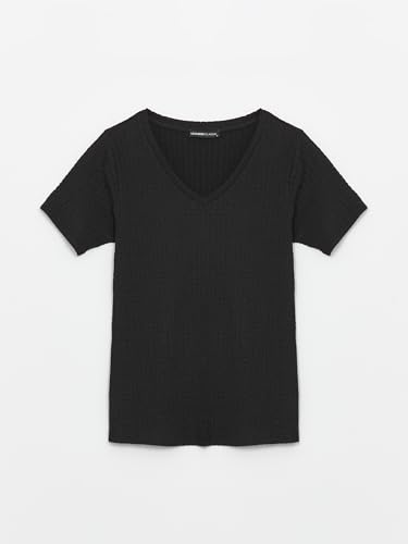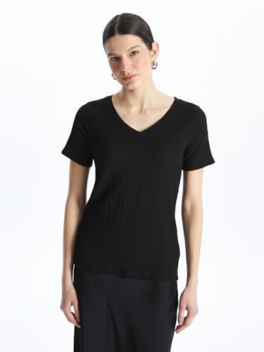 LC WAIKIKI - تيشرت للنساء بقصة مستقيمة ورقبة على شكل حرف V وأكمام قصيرة من ال سي وايكيكي