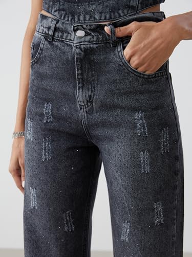 LC WAIKIKI - بنطلون جينز بقصة واسعة وايدليج ونمط ممزق للنساء من ال سي وايكيكي