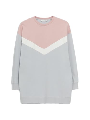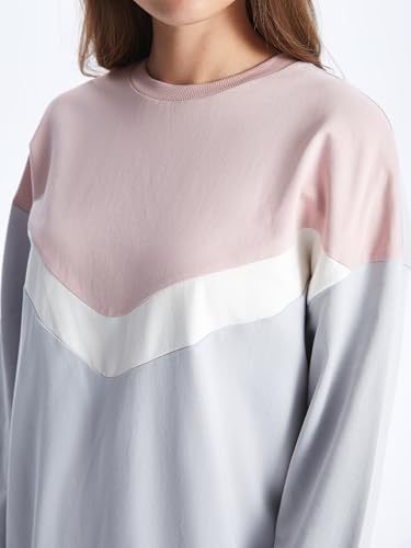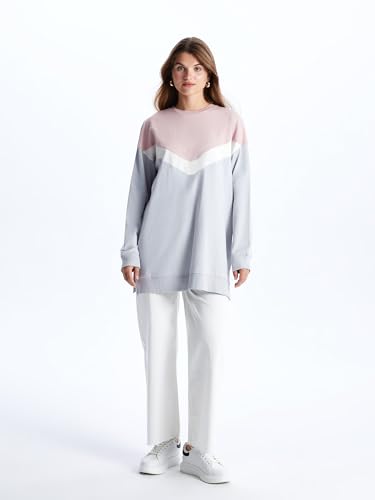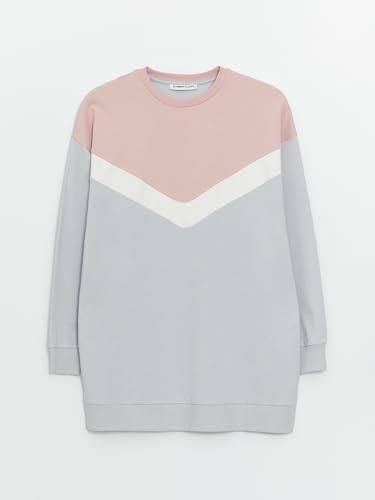 LC WAIKIKI - LC WAIKIKI Woman Crew Neck Color Block Long Sleeve Oversize Sweatshirt Tunic