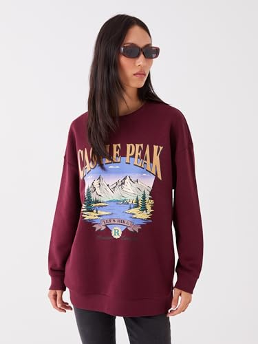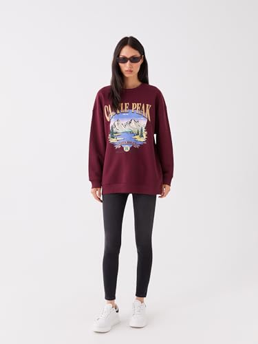 LC WAIKIKI - LC WAIKIKI Woman Crew Neck Printed Oversize Thick Sweatshirt