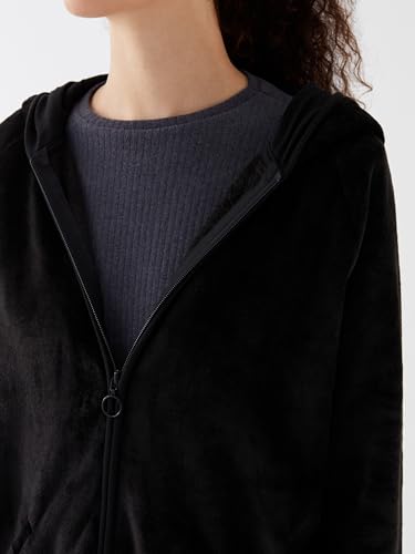 LC WAIKIKI - LC واكيكي توب بيجامة قطيفة سادة بغطاء للرأس واكمام طويلة للنساء