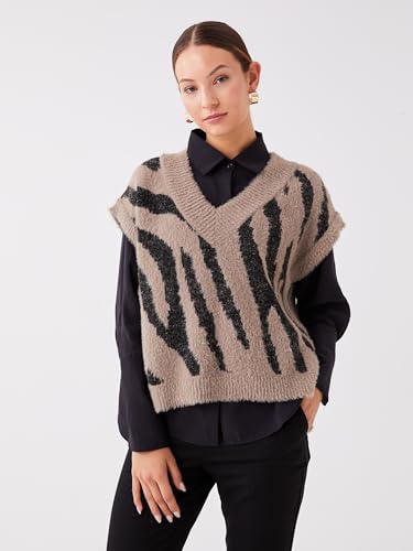 LC WAIKIKI - LC WAIKIKI Woman V Neck Patterned Oversize Knitwear Sweater Vest