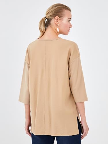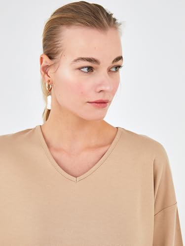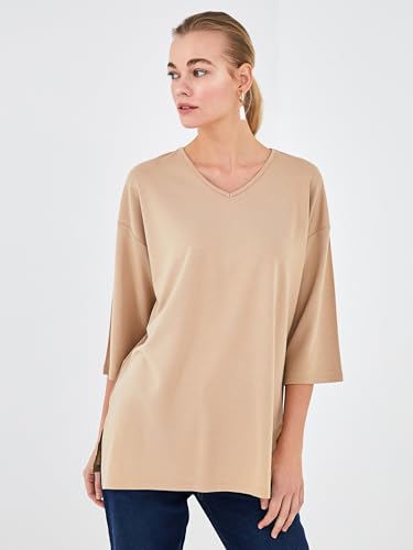 LC WAIKIKI - بلوزة نصف كم بقصة مستقيمة ورقبة شكل V للنساء من ال سي وايكيكي