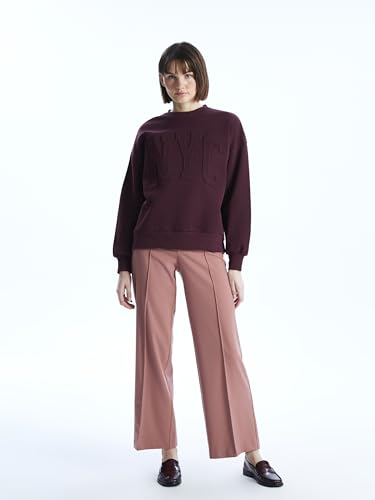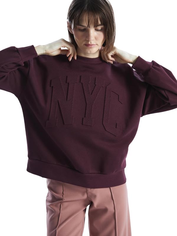 LC WAIKIKI - سويت شيرت سميك مطبوع برقبة دائرية ضيقة للنساء من ال سي وايكيكي، مقاس كبير الحجم