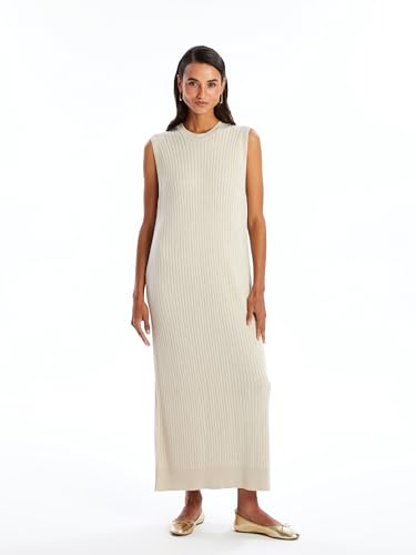 LC WAIKIKI - فستان منسوج سادة برقبة دائرية ضيقة للنساء من ال سي وايكيكي