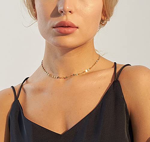 Lcherry - Lcherry Layered Gold Necklaces for Women 14K Gold Plated Disc Choker Layered Necklaces for Women Layering Necklace, Metal