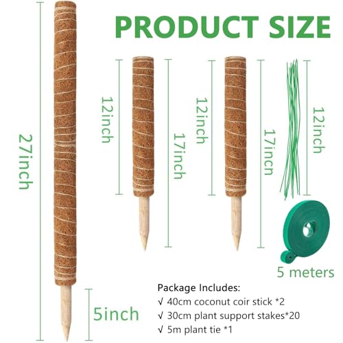 - 【Natural Coir Material】 Made from 100% eco-friendly coconut fiber, these moss poles provide perfect support for climbing plants to attach aerial roots while blending naturally with your indoor jungle aesthetic.