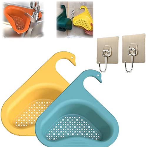 Generic - سلة تصريف لزاوية حوض المطبخ مثلثة على شكل بجعة لطيفة - صفاية بقايا الطعام - متعددة الوظائف ومناسبة لمعظم الأحواض من ال دي ال دي اتش، قطعتان (أزرق وأصفر)