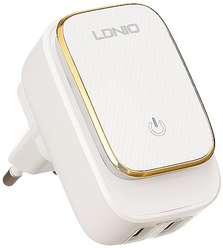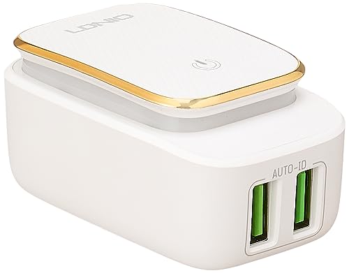 LDNIO - LDNIO A2205 Charger LED Touch Lamp With 2 USB Port AUTO-ID 2.4A , Touch power Switch With Lightning Cable - White With gold