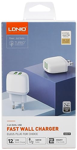 LDNIO - Ldnio A2219 Eu Fast Charger 2 Usb Ports With Type-C Cable Perfect For Home And Office - White Set Of 2 Pieces