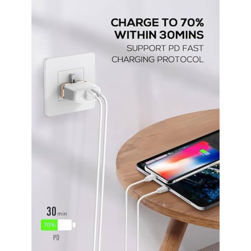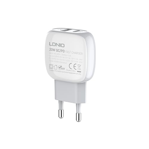 LDNIO - LDNIO A2313C Fast Charger EU Plug With USB/Type C Ports And USB To Lightning Cable 20W - White