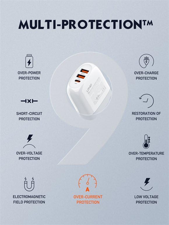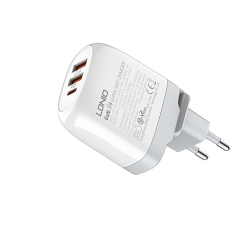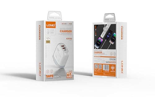 LDNIO - LDNIO A3511Q Super Fast Charging 65W With 3 Port 1PD+2QC3.0, Replaceable Plug Charger With Type-C-Lightning Cable 1M - White