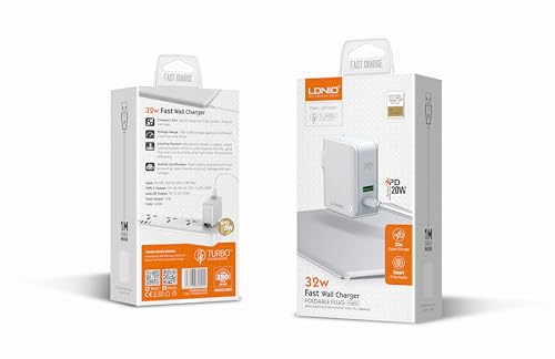 LDNIO - LDNIO A4403C Travel Fast Charger With Cable From Type C To Lightning And USB/Type C Ports 30W - White