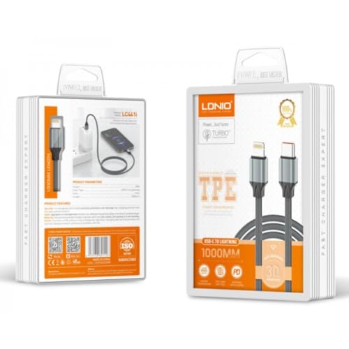 LDNIO - LDNIO LC441I USB-C to Lightning Cable 1M, 30W PD Fast Charging & Data Transfer, Durable Cord with Overheating Protection for iPhone & iPad – Gray