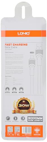LDNIO - كابل بيانات للشحن السريع من USB-A إلى مايكرو لدنيو موديل LS603 طول 3 متر أبيض - برتقالي لمحول الشحن