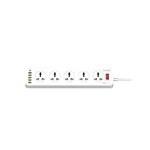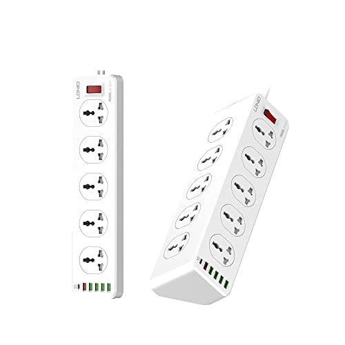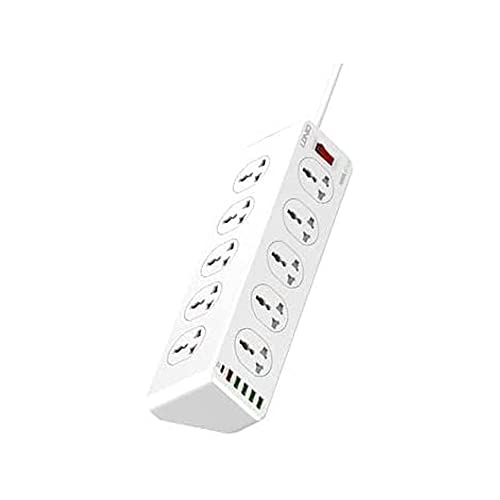 Generic - شاحن منزلي من لدنيو SC10610 بقدرة 2500 واط بـ 10 مقابس مع 5 منافذ USB ومنفذ بي دي من النوع سي، شاحن منزلي لسطح المكتب مع سلك كهرباء بريطاني بطول 2 متر
