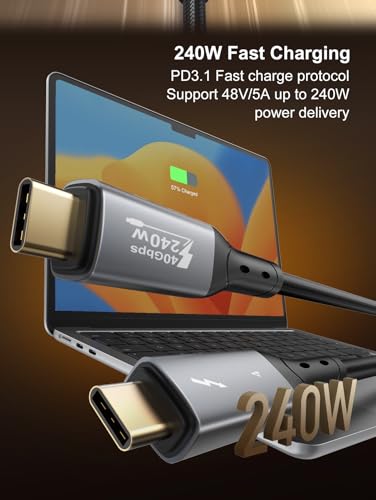 UNBLACK - LDNIO USB-4 Cable 240W USB-C TO USB-C 40Gbps Date Transfer 8K 60Hz Or Dual 4K 60Hz-1Meter Compatible with IPhone 15/iphone 16/s22 ultra/s23 ultra/s24 ultra/s25 ultra Compatible with Laptop (Black)