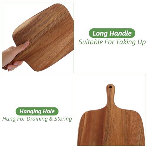 - 【مقبض طويل وفتحة تعليق】المقبض الطويل للوح تقديم الخبز صلب وخفيف الوزن، مناسب للإمساك. تسمح فتحة التعليق الموجودة على المقبض بتعليق لوح البيتزا على الخطاف، مما يساعد في التجفيف والتخزين عند عدم الاستخدام.