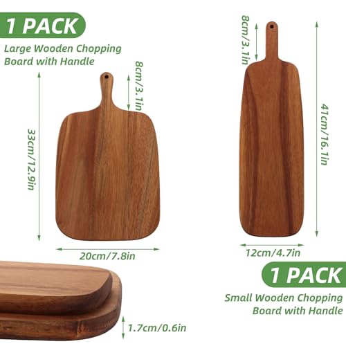 LDXDRU - لوح تقطيع خشبي بمقبض، لوح تقطيع لخبز الجبن، صينية تقديم تشاركوتيري بنية للفواكه والحلوى والخبز والطعام - 33 × 20 سم و41 × 12 سم، عبوة من 2 قطعة من LDXDRU