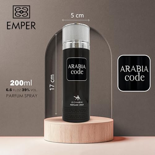 - Le Chameau Arabia Code Perfume Body Spray For Men is a refined and invigorating body mist crafted for the modern man who loves a fresh yet sophisticated scent that enhances his presence throughout the day. Blending crisp top notes with smooth, masculine undertones, this body spray offers a well‑balanced fragrance that feels clean, confident, and subtly alluring — perfect for everyday use or layering under your favorite cologne.