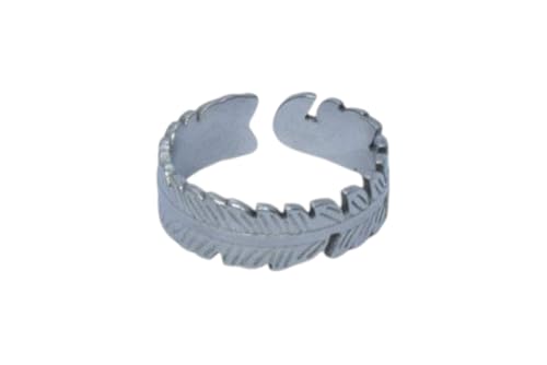 Generic - Leaf Style Stainless Steel Open Ring - Silver