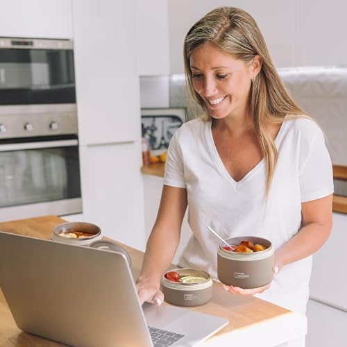 - ✅ STAINLESS STEEL INSULATED THERMAL CONTAINERS: Containers keep food temperature hot or cold for long hours, thanks to built-in thermal insulation. The high quality stainless steel material is food-safe, does not retain odors or flavors, and resists wear making it perfect for everyday use.