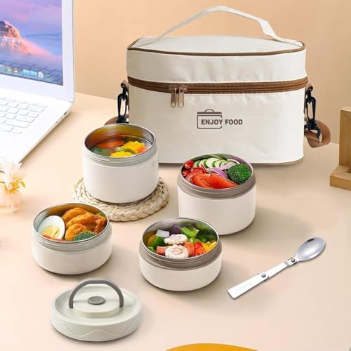 Spaceshoop - Leak-proof Thermal Box, Adult Lunch Box with Insulated Bag Stackable Food Container Made of Stainless Steel (multicolor, 4 * 1)