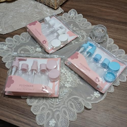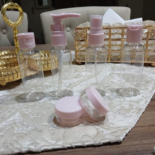 Generic - طقم عبوات سفر ضد التسريب مجموعة السفر الكاملة عبوات صغيرة آمنة، عملية، وخفيفة للحفاظ على مستحضراتك سهلة التنظيم وخفيفة الوزن (وردى)