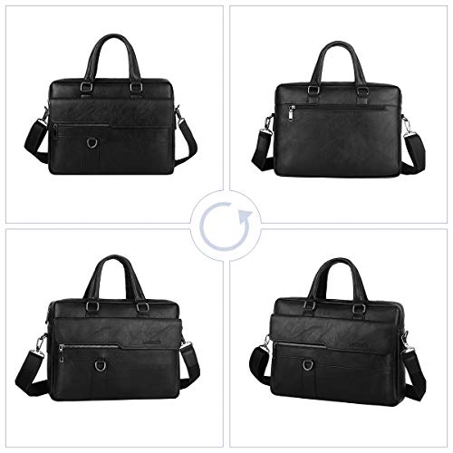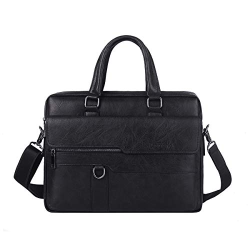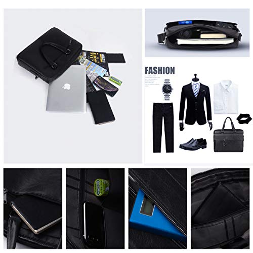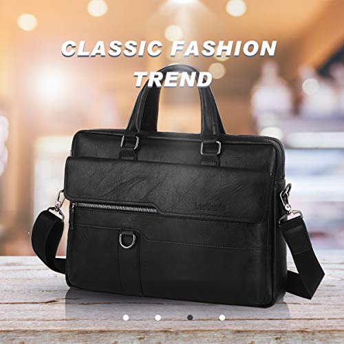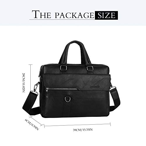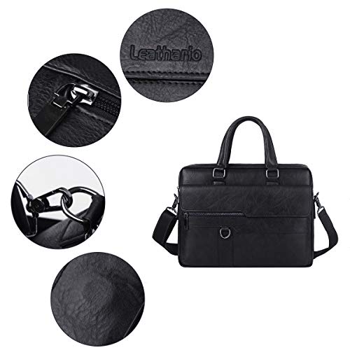 Leathario - Leathario Men's Briefcase Bag Leather Messenger Shoulder Bag For Men 14" laptop Bag, Black, Messenger