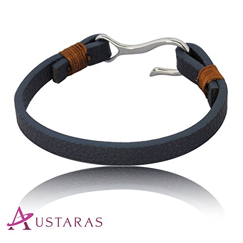 Hawaiian Jewelry Austaras - Leather Bracelet by Austaras - S Hook Clasp Nautical Fishing Hook, One Size, Leather