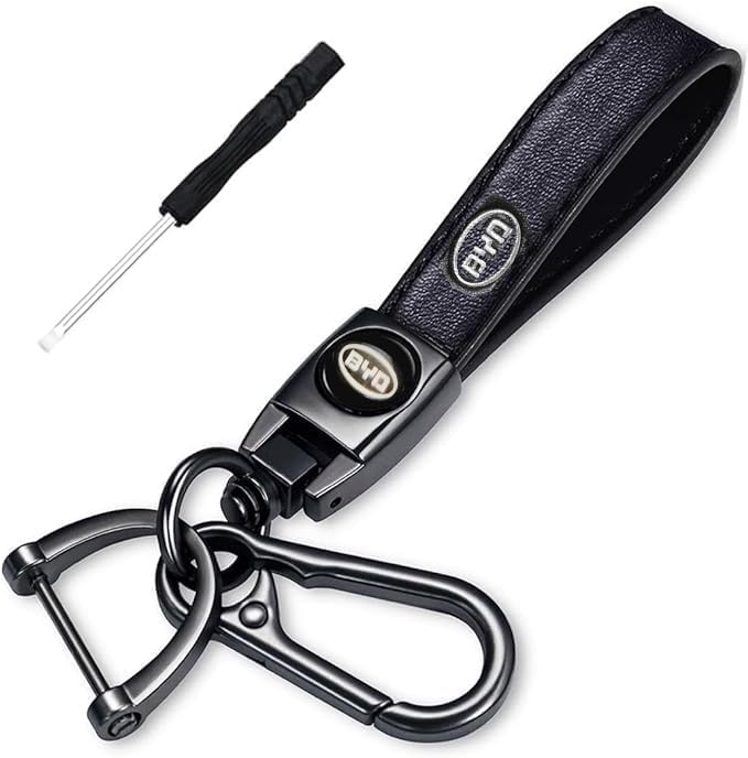 Generic - Leather Car Keychain Keychain Metal Rings for Car Keys Family Keys - Compatible with BYD Logo
