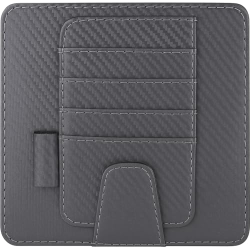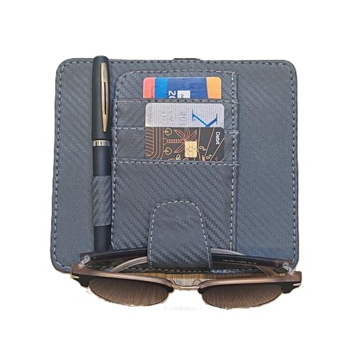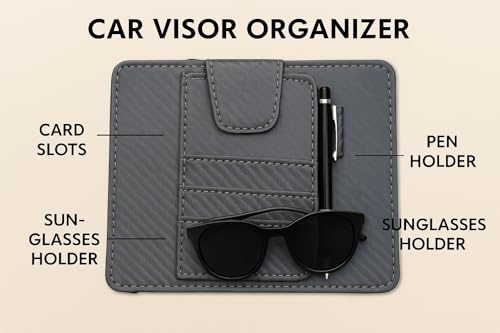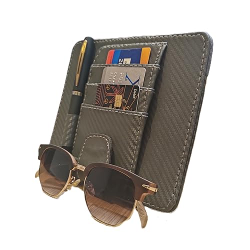 Generic - Leather Car Visor Organizer – PU Leather Sun Visor Storage with Card Slots, Mesh Pocket, Magnetic Sunglasses Clip, and Pen Holder – Universal Fit for Cars and SUV (Grey Carbon Fiber (Small))