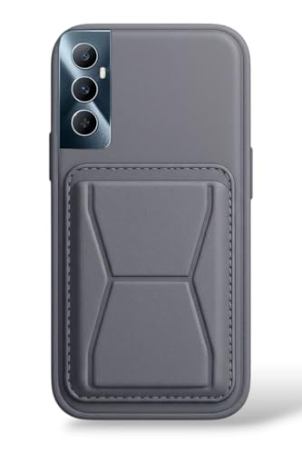 Generic - Leather Case Compatible for Realme C65 Shockproof Leather Back Card Storage & case built-in Stand PU leather for a stylish look, comfortable grip (Gray)