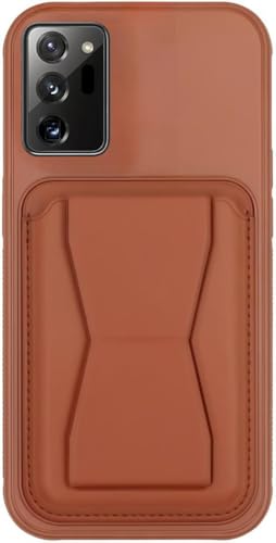Generic - جراب حماية خلفي من الجلد مقاوم للصدمات متوافق مع موبايل سامسونج نوت 20 مزود بحافظة كروت صغيرة وحامل للجراب صغير مدمج في الخلف لمظهر أنيق، وقبضة مريحة (بني)
