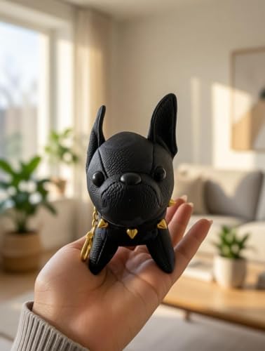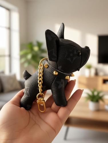 Generic - Leather Keychain Dog - Elegant French Bulldog-shaped charm crafted from premium leather and plush cotton, designed for stylish bags and daily carry