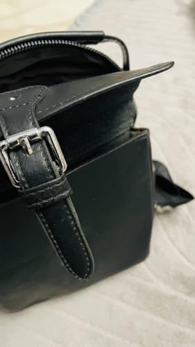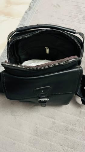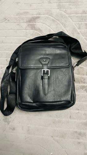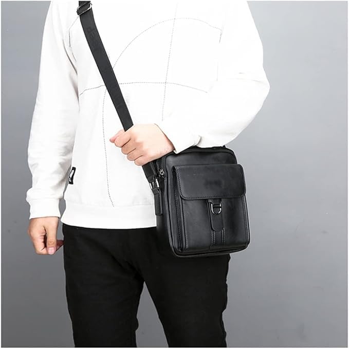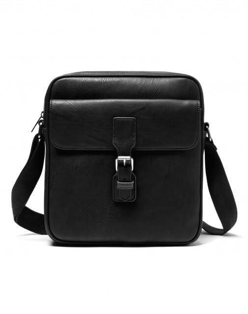 Generic - Leather Messenger Bag, Black, Adjustable Shoulder Strap, Front Buckle Closure