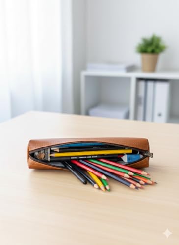 - PREMIUM MATERIAL: Crafted from high-quality genuine leather with a rich brown finish, this pencil case offers durability and a sophisticated appearance for everyday use