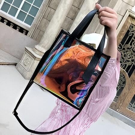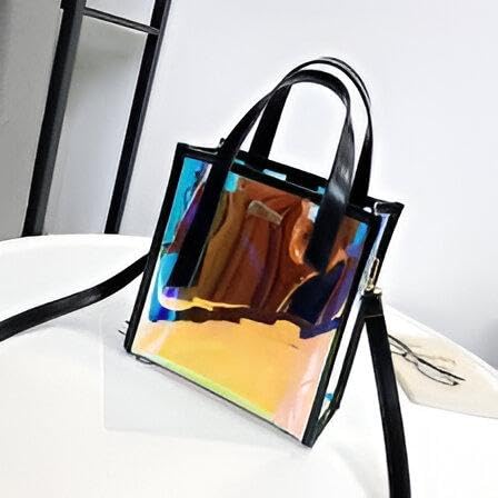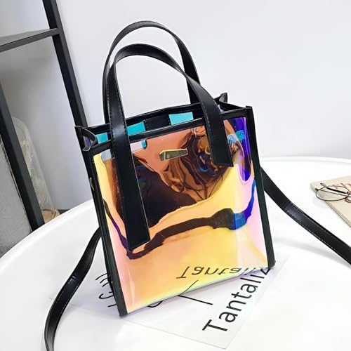 Generic - حقيبة جلدية مع شعار مطبوع، حقيبة يد نسائية أنيقة مع حشوة شفافة بالليزر لتجربة تسوق مخصصة، مثالية للسيدات أثناء التنقل