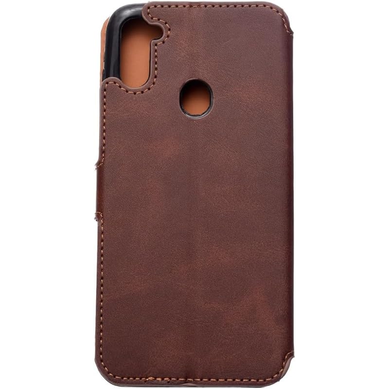 Generic - جراب حماية من الجلد عالي الجودة بتصميم كلاسيكي وحواف سيليكون لموبايل سامسونج جالاكسي A11 6.4 بوصة - بني غامق