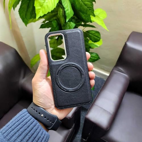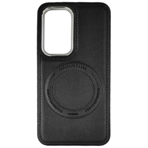 Motevia - Leather Samsung Case Compatible with MagSafe Magnetic Hard Back Shockproof Cover S22 & S23 (Black, S23)