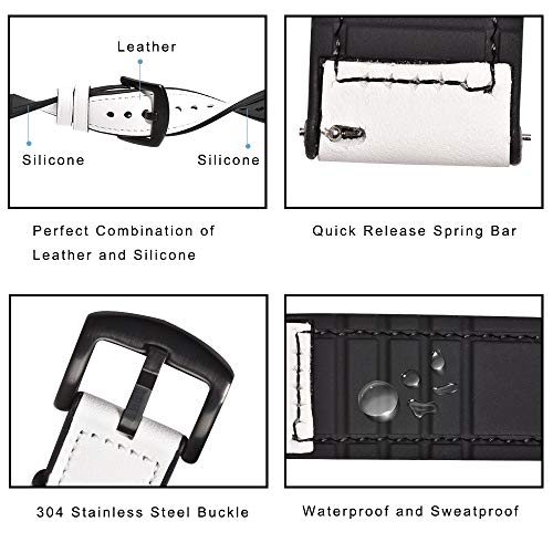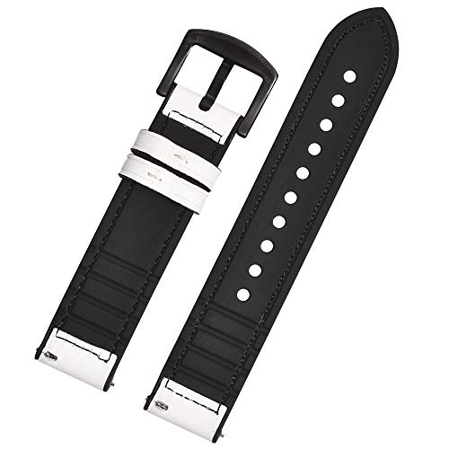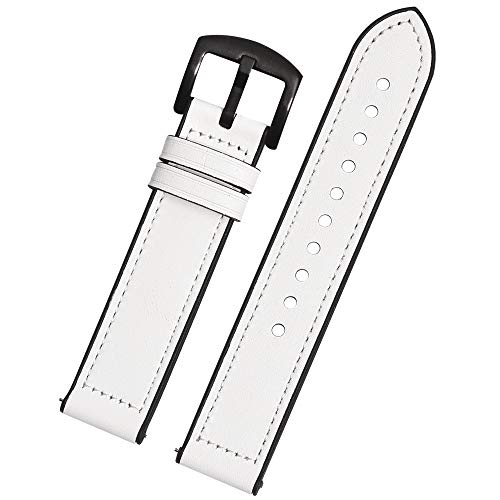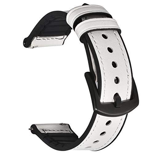 BEAFIRY - Leather Silicone Hybrid Watch Band 22mm Quick Release Leather Rubber Watch Strap Watchband For Men Women White Black Buckle