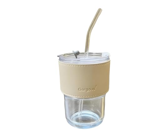 Generic - Leather Sleeve Glass Mug - 400ml reusable sipper bottle with silicone straw and leakproof cap, designed for coffee, tea, or milk in elegant white finish.