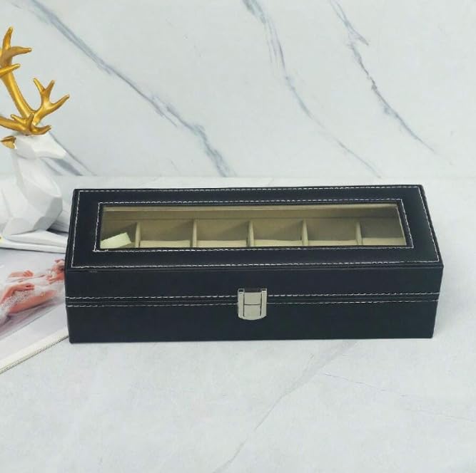 Generic - Leather Watch Box Organizer – PU Leather Watch Storage Case with Multiple Slots, Elegant Watch Display Case for Watch Collection and Accessories (Medium 6 Slots)