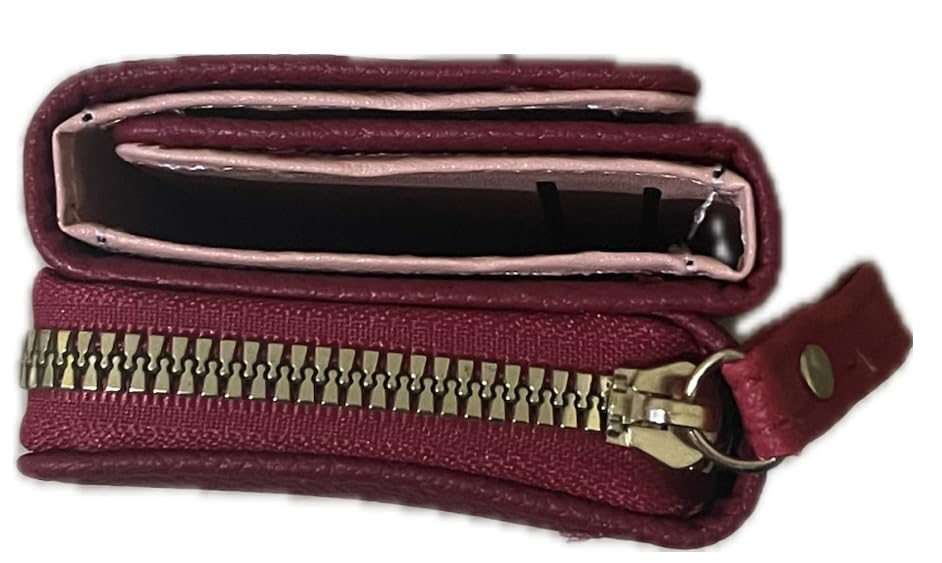 Generic - Leather Zip around wallet for women - Dark Red محفظة جلد نسائية انيقة لحفظ النقود و الكروت و المتعلقات صغيرة الحجم -نبيتي -