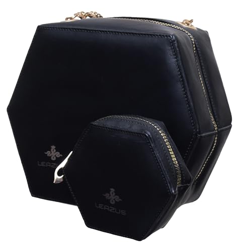 LEAZUS - LEAZUS Women's Leather Shoulder Bag W2 Black