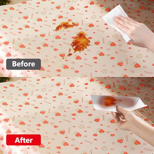 - 【Waterproof & Oil-Proof】Effortlessly repel leaks and stains from oils and liquids. A waterproof fridge mat, drawer liner, or cabinet liner that wipes clean in seconds with a damp cloth.
